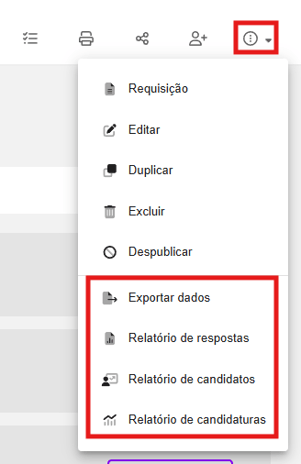 Nessa opção será baixado automaticamente um relatório completo em .xlsx com todos os dados de contato dos candidatos participando do processo, em qual etapa estão, status, data de candidatura, escolaridade, último cargo, última empresa e último salário.
